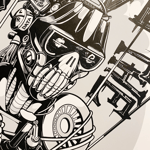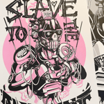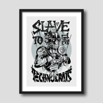 Medium: Limited edition prints of the award winning illustration "Slave to the Technocrats". Published as a 2-colour silkscreen print on 120 lb 100% cotton stock. Available in 2 sizes and colour combinations.