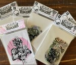 4" x 6" 3-colour (pink, slate and black) print with 4 large holographic vinyl stickers in an limited edition of 120 sets.